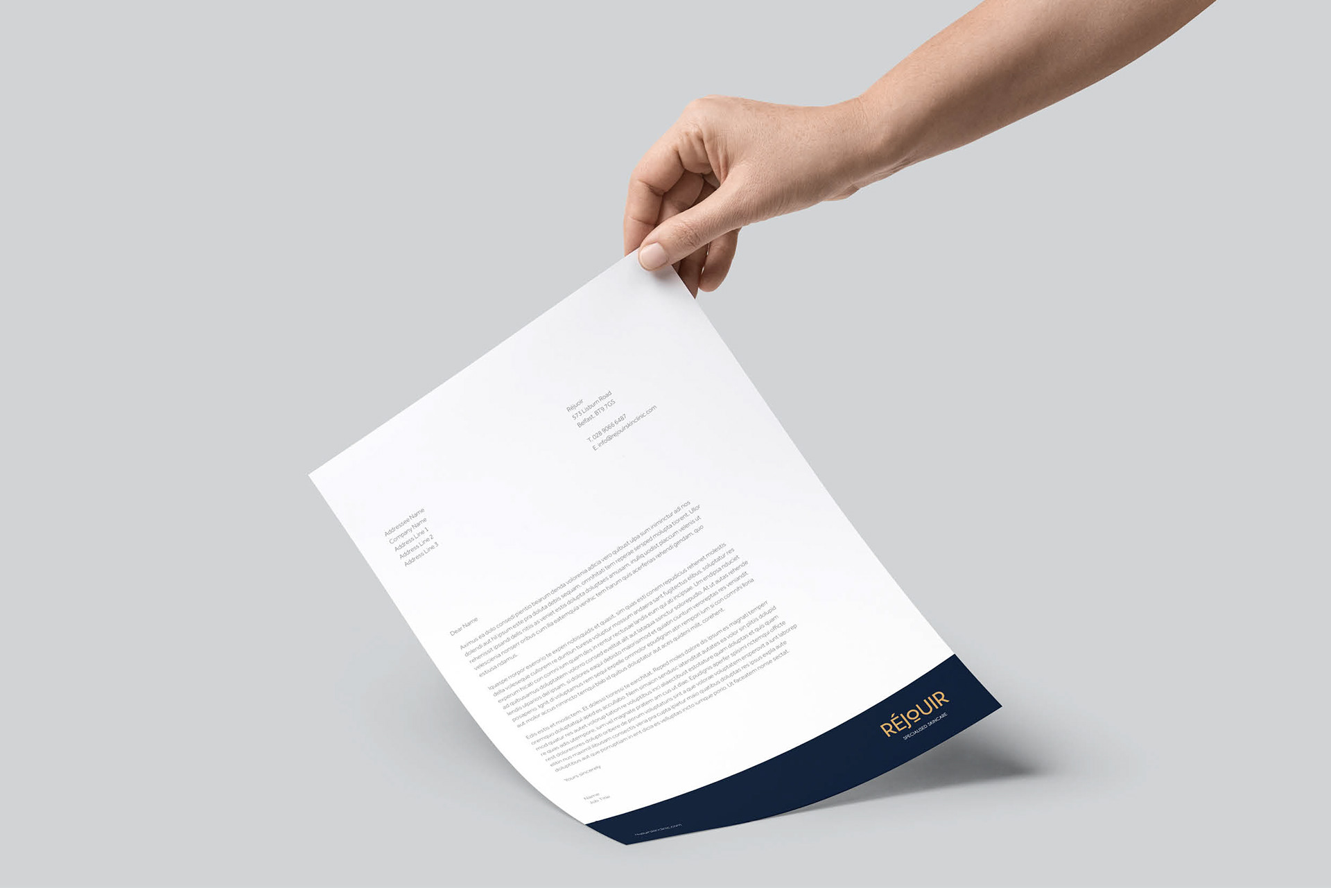 We created this striking, art deco inspired brand for Réjouir Specialised Skincare in Belfast. The Lisburn Road premises needed to feel like a safe and welcoming environment for clients and be memorable yet clinical.